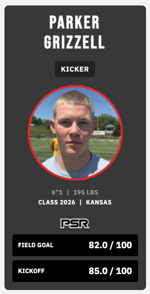 Parker Grizzell Height: 6’1″ | Weight 185lbs CLASS OF 2026 | KS Maize South High School performance score ranking FG rating:…